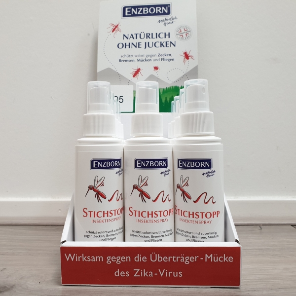 Enzborn Stichstopp beschermt tot 4 uur tegen insectenbeten van knutjes, dazen, horzels, muggen, zandvliegjes, tseetseevliegen, teken, enz.